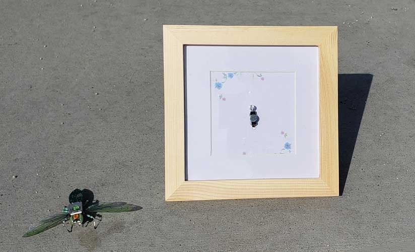The eBugs are made interactive by a module I designed that lights up and makes insect sounds. A rare-earth magnet attaches the module to the eBug. The module is attached to the frame. Alternatively, the eBug can attach to any metal surface, such as a refrigerator or a dry-erase board.